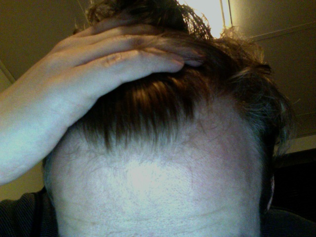 es ist halt alles ziemlich wuselich wenn ich die haare zurück mache. und es wachsen auch haare in einem areal auf der stirn das etwas entfernt von meine haarschopf ist, was ziemlich dämlich aussieht.