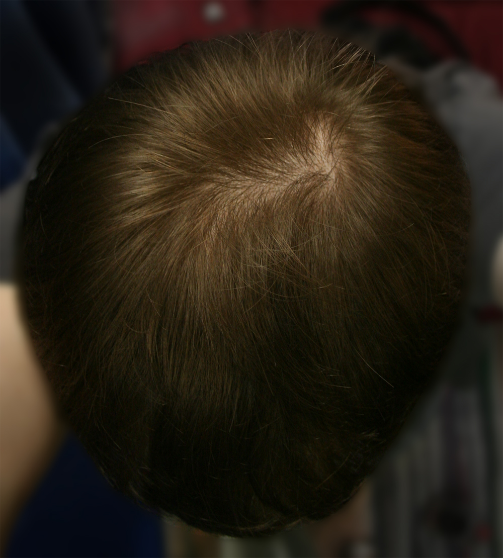 Ein Haarausfall am Wirbel lässt sich immer schlecht durch die Größe definieren, sondern dadurch , ob schon miniaturisierte Haare vorhanden sind -> da das nicht dein Wirbel ist, können wir di auch nichts sagen Wink