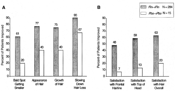 So sind nach fünf Jahren Behandlung mit 1 mg Finasterid (Propecia) nur 48% der Anwender mit ihrer vorderen Haarlinie zufrieden. Diejenigen, die kein Finasterid (sondern Placebo) erhielten waren nur zu 7% zufrieden.