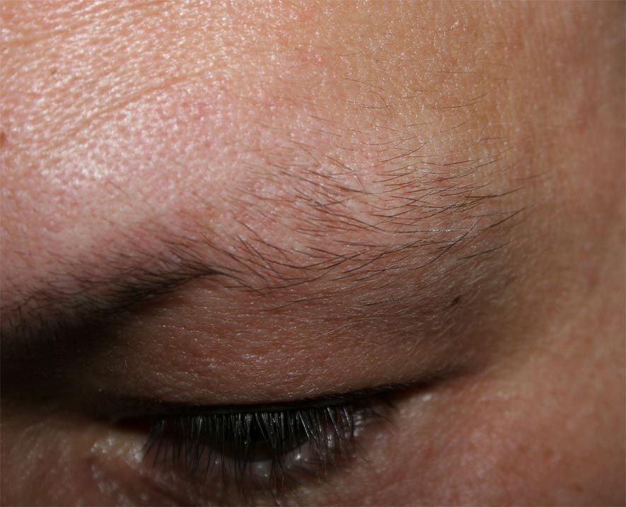 in den Augenbrauen, kommt vor wenn ich den Sprüher benutze!