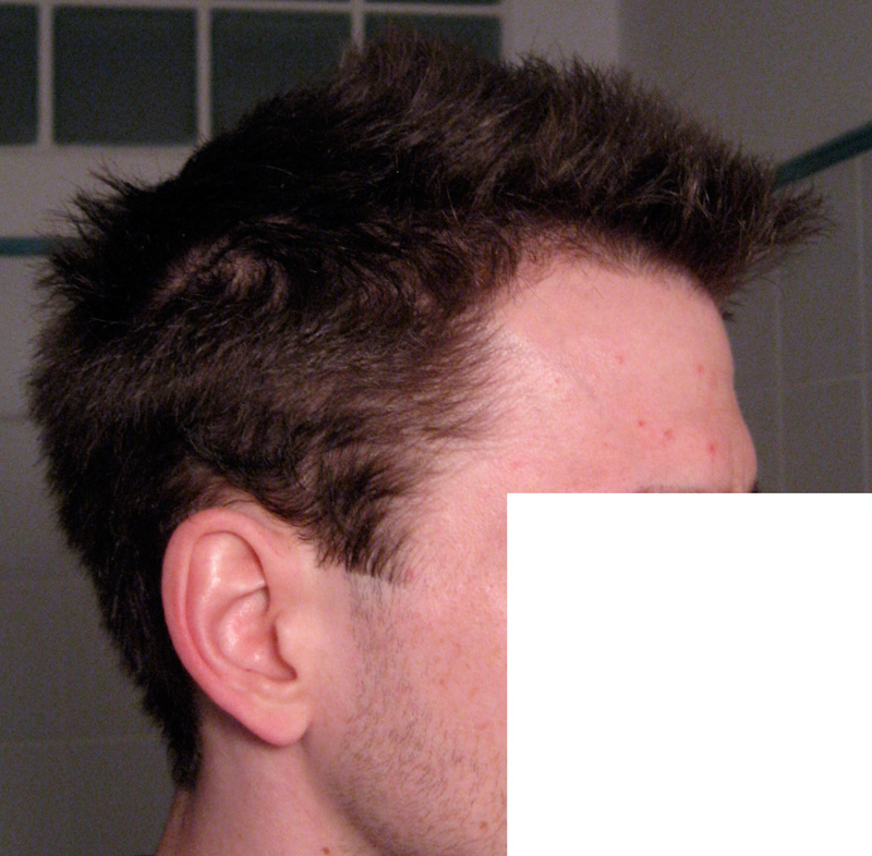 Habe übrigens auch ein Photo von Januar 2010 angehängt, als die Haare noch voll waren und die Kopfhaut von keiner Stelle zu sehen war. So war es bis zu dieser einen Woche im August.