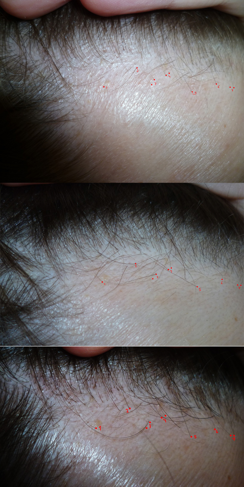 Gibt es überhaupt einen Beweis, dass es jemals bei jemandem funktioniert hat? Wer AGA hat wird sie nicht aufhalten es ist nachweislich hormonell und nicht Säurebedingt. Auf all den Bildern erkenne ich absolut keinen Unterschied, von der Beleuchtung mal abgesehen.