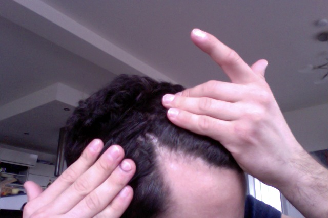 ich gebe zu, dass man auf den fotos nicht genau den unterschied sieht. aber glaub mir, jemand der jeden tag mehrmals deswegen in den spiegel schaut - sprich ich - erkennt kleinste veränderungen sofort. es geht dahin, dass die ghe immer mehr zum streifen werden, also nach oben und weiter nach hinten wandern.