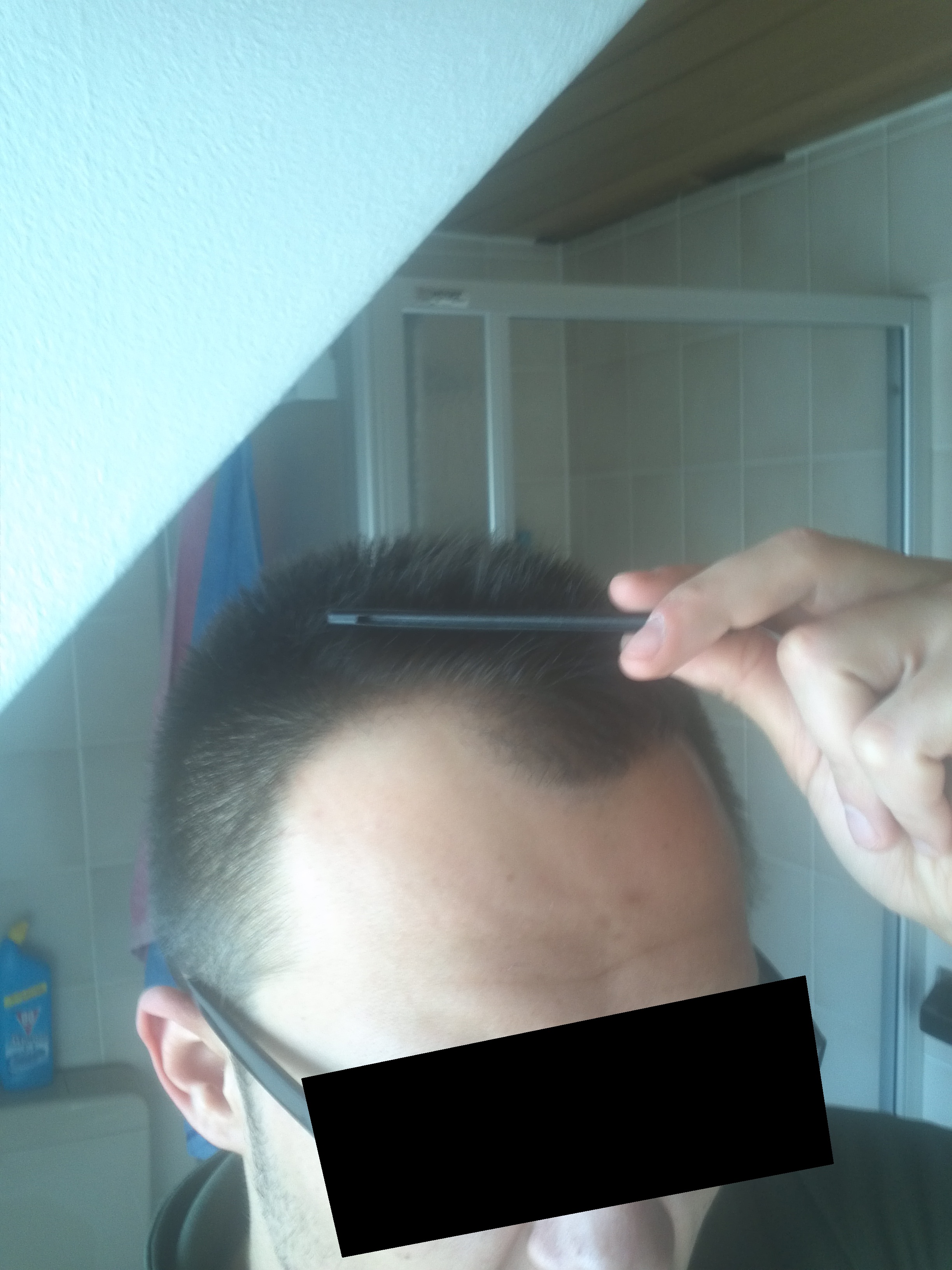 Leider habe ich beschlossen die GHE mit drübergekämmten haaren vom oberkopf zu verdecken.