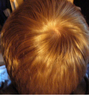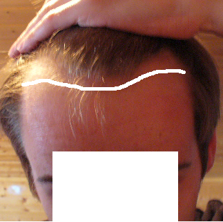 Zur Erklärung noch vorab: Den Wirbel hinten hatte ich in dieser Ausbrägung schon immer und ich hatte schon immer einen sehr hohen Haaransatz nur die GHE´s waren halt mal kleiner. Auf einem Foto hab ich mal grob eingezeichnet wie die Haarliene so vor 6-8 Jahren war, zusehen auch etwas auf dem Foto 18years.