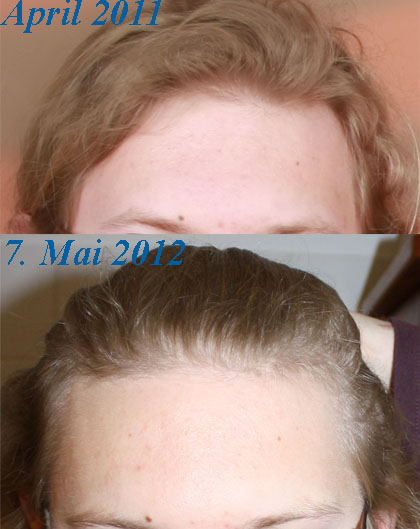 die Haare wurden ab April-Mai 2011 besser .. viel besser .. Aug. 2011 hatte ich fast volles Haar und fast keine Anzeichen einer AGA ...