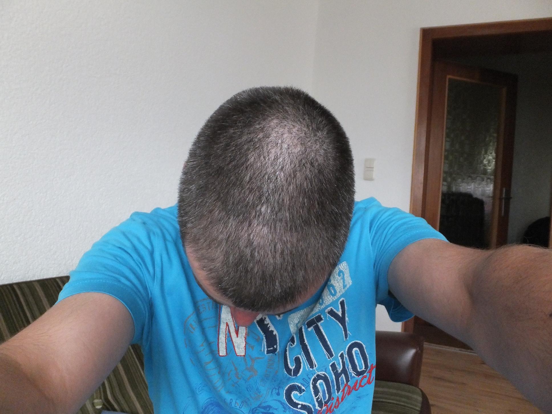Daniel81 schrieb am Mon, 18 June 2012 22:51Hi Leute! Also ich habe mir jetzt erst mal die Haare auf 6mm runterrassiert. Sieht zwar sehr ungewohnt aus, aber ich muss wohl irgendwie damit leben. Was mir gestern Abend aufgefallen ist, nachdem ich etwa 20 Urhr, das flüssige Minox aufgetragen habe (regaine), habe ich etwa 2,5 Stunden später bemerkt, das der ölige Film immer noch auf der Kopfhaut zu sehen ist. Ist das normal? Ich dachte das zieht alles irgendwie schneller ein? Werde mal in den nächsten Tagen wieder Bilder reinstellen!