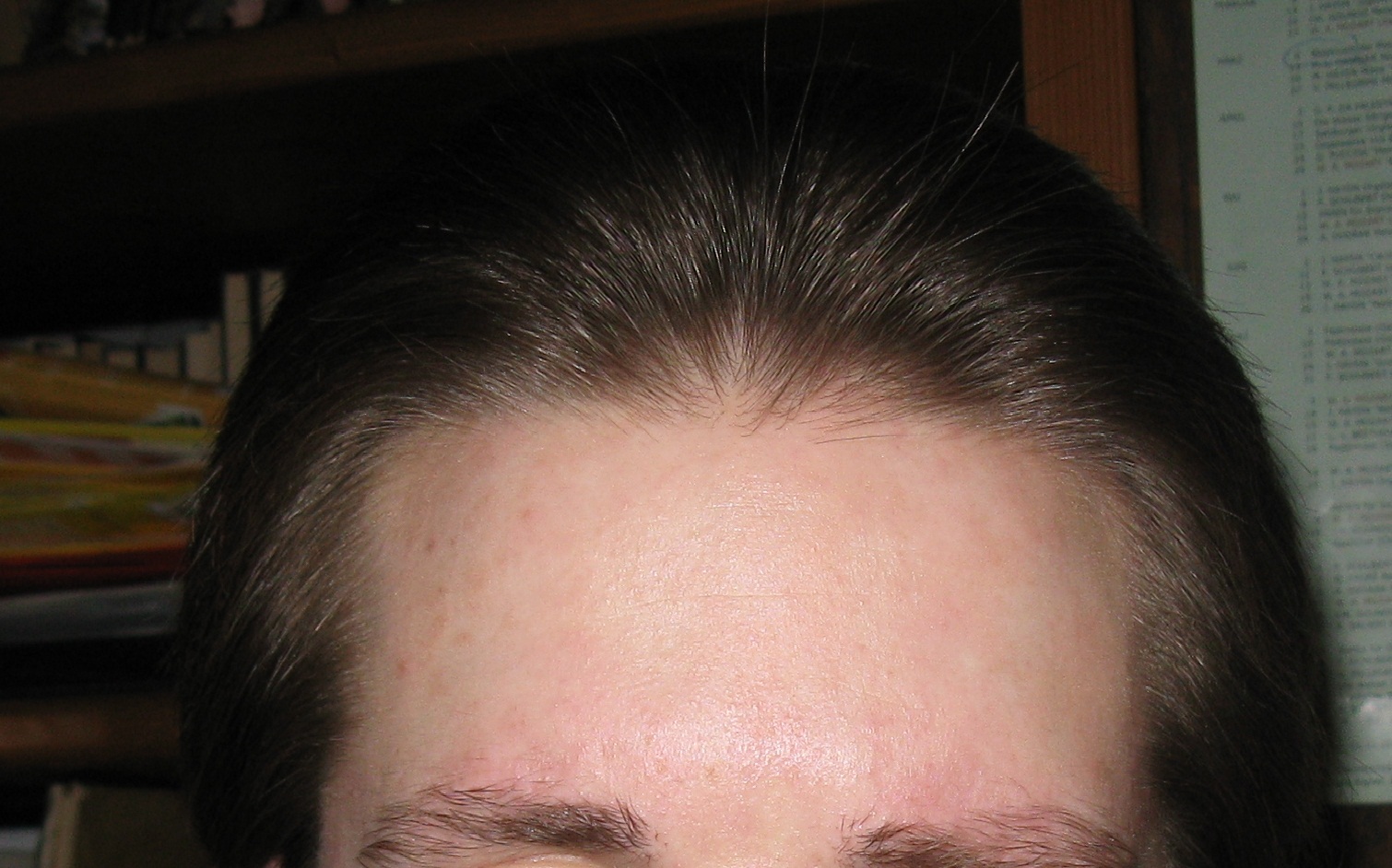 Ok, du weißt noch nicht Bescheid: Die Haarlinie war schon immer so. Genau so. Bis auf die seitliche Velluslinie. Vergleiche dazu mal das Bild auf dem ich 13 bin und die Bilder mit 19,5. Die mittlere Front war in meinen Kindesjahren sogar teilweise noch undichter als jetzt.