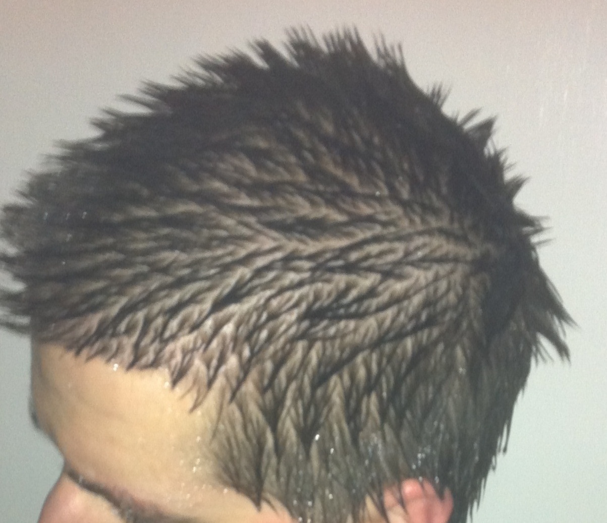 Ich hab schon mitgedacht war nur nicht sicher, weil ich da ein Bild habe auf dem die Haare länger/feucht sind (frontal) und das Bild vor deinem Post ist mit sehr kurzen Haaren (2cm) direkt nach dem Waschen (patschnass) schräg-oben von links.