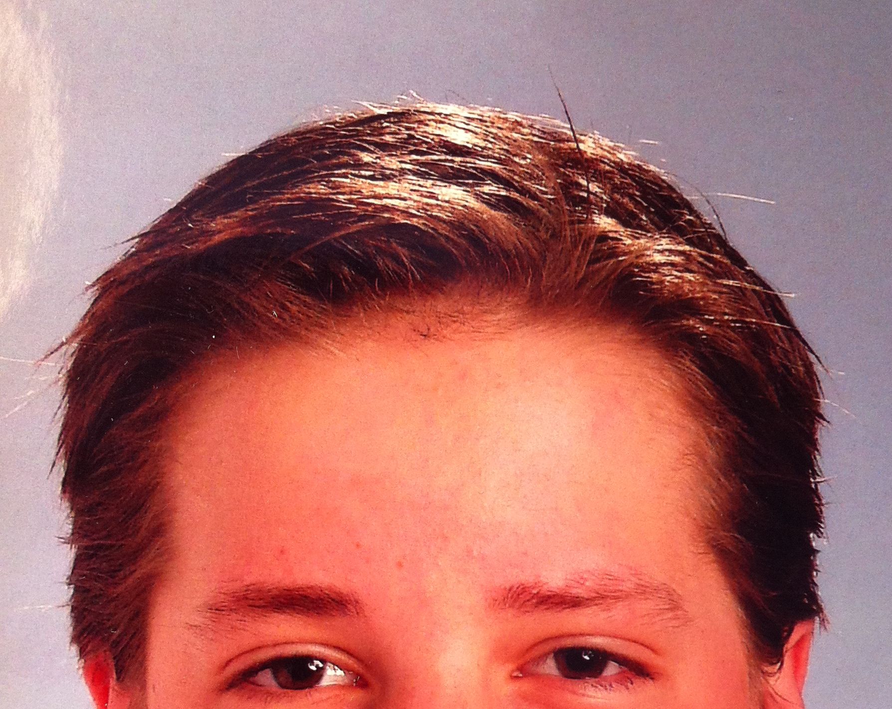 Ok, du weißt noch nicht Bescheid: Die Haarlinie war schon immer so. Genau so. Bis auf die seitliche Velluslinie. Vergleiche dazu mal das Bild auf dem ich 13 bin und die Bilder mit 19,5. Die mittlere Front war in meinen Kindesjahren sogar teilweise noch undichter als jetzt.