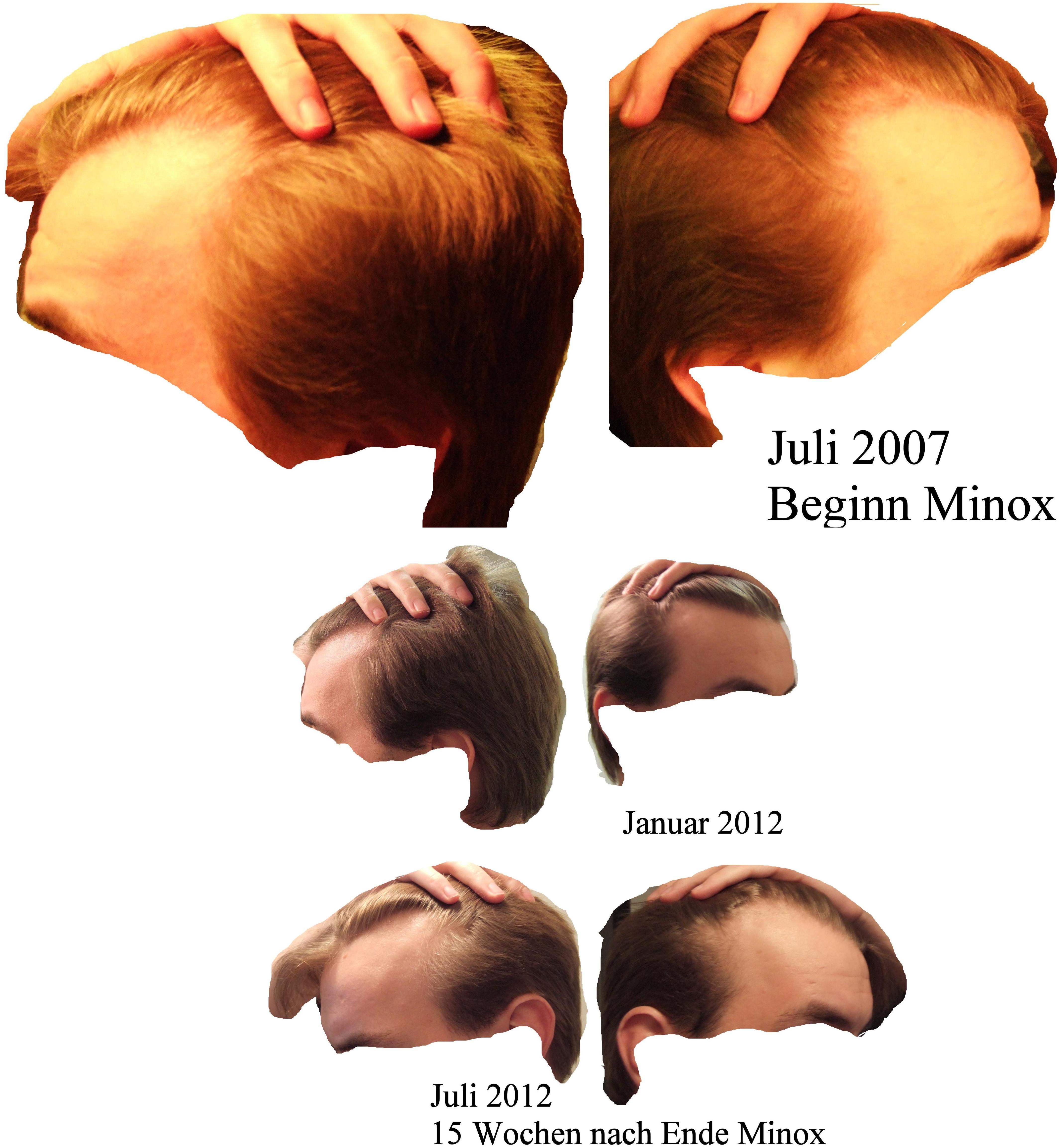- Juli 2007: Beginn Minox 1xtägl. ca. 0.3-0.5ml 5% an GHEs