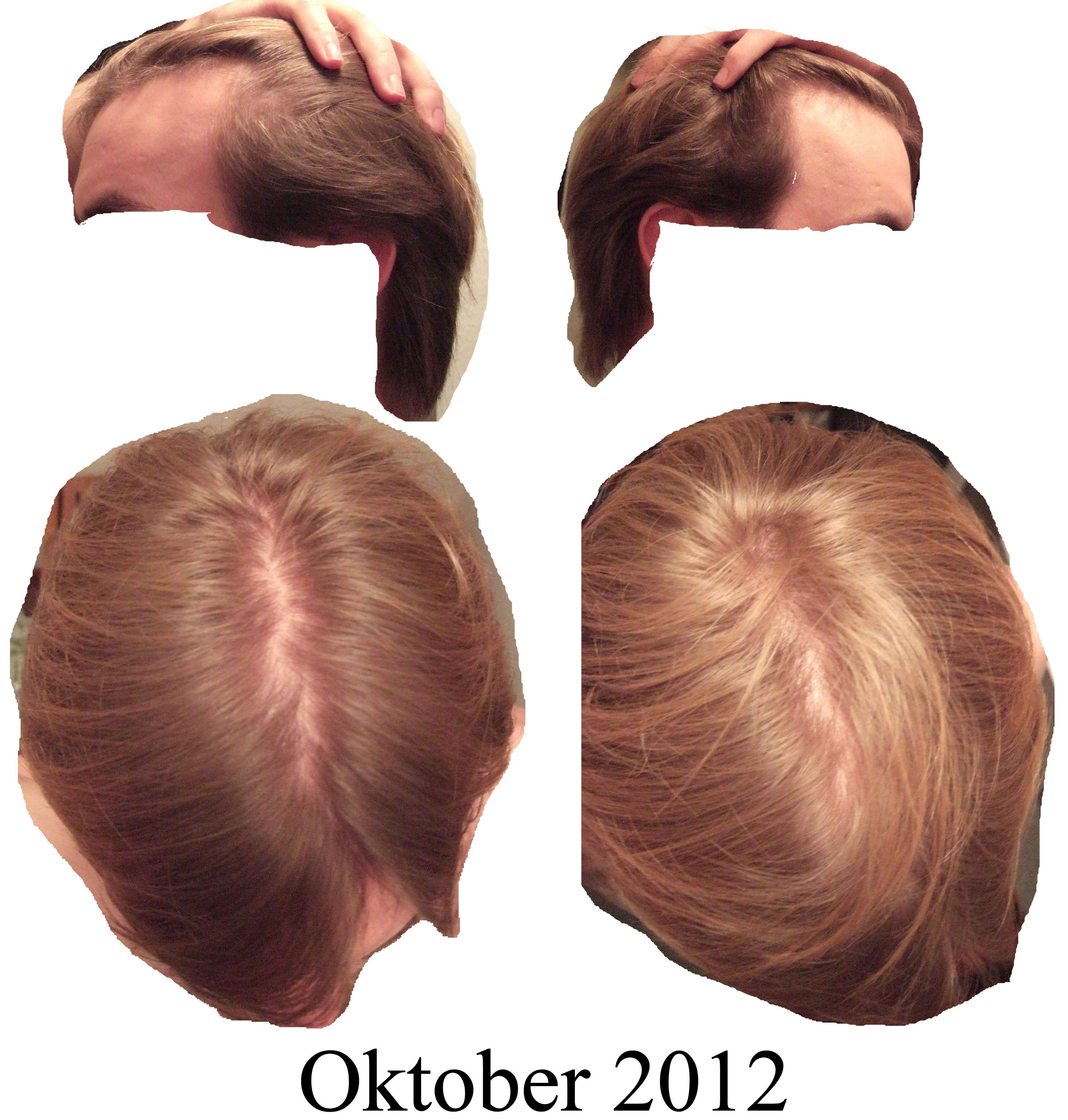 - 18.08.2012: Beginn sehr starker Haarausfall an Front & Tonsur, verbunden mit Jucken/Brennen/Spannen/Haarwurzelschmerz