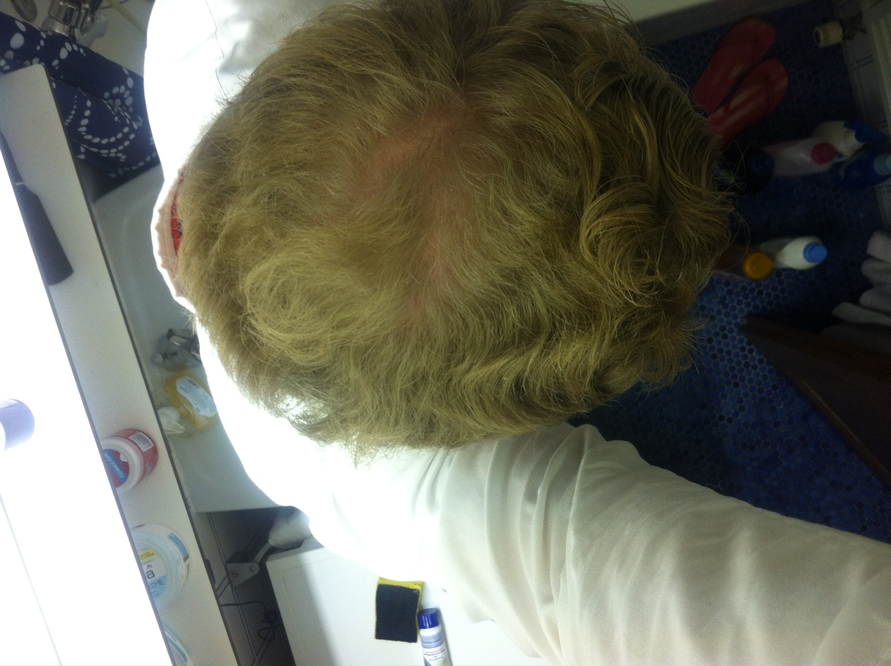 Anbei ein Bild von heute aus dem Bad mit trockenen weggekämmten Haaren.