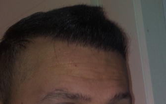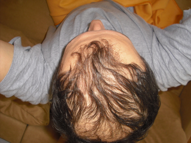 Auf dem Bild von vorne sieht man wo ich den Haarausfall hatte und wo jetzt wieder Haare da sind.