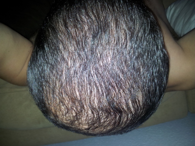 Außerdem nehme ich seit 3 Monaten Minox (Schaum) und das jeden Abend. Ich gebe zu ich habe danach wirklich Kopfschmerzen und ich merke einen gewissen Druck im Kopf und das nehme ich auch in Kauf. Achja, Schuppen, ich habe auch Schuppen dadurch. Leider habe ich keine Fotos gemacht, weil ich nie geglaubt habe, dass ich so ein Ergebniss erzielen werde. Ich wollte mit 40 kein NW5 sein und wollte nur mein Haarausfall stoppen.