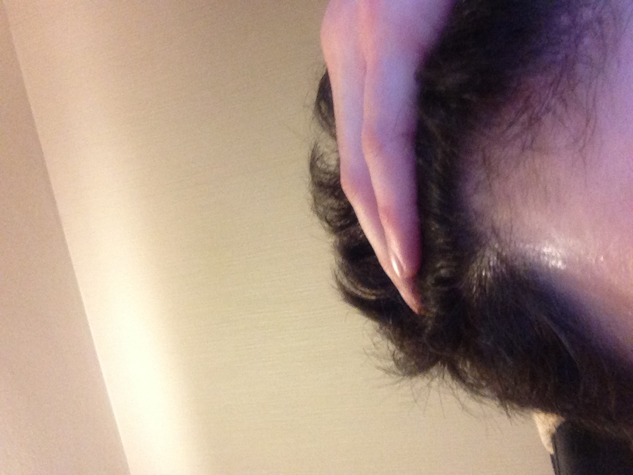 an der front hab ich glaub ich noch die juvenile hairline oder wie man das so nennt, jedoch sehr licht. mir fallen ständig terminalhaare aus, diese wachsen selten nach, wenn , dann fallen diese bei 1cm größe ab ....