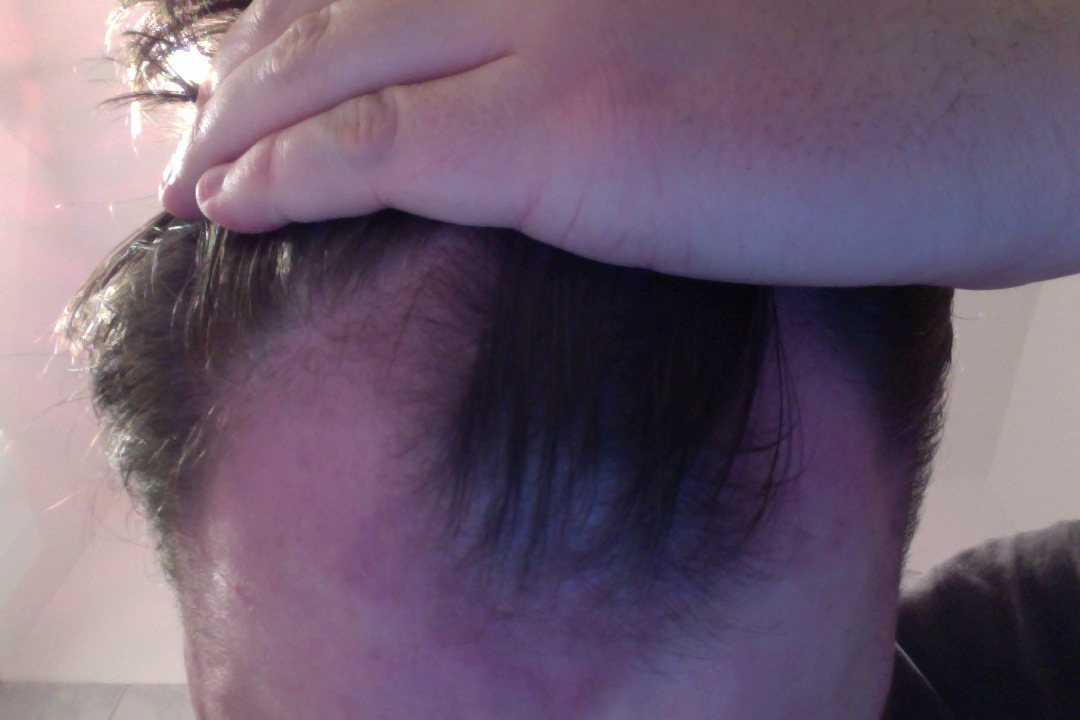 Ich hoffe ich kann bei euch einen Lösungsansatz finden damit ich das Problem ein wenig eindämmen kann und sogar eventuell ein paar Häärchen zurückgewinnen kann (ich erwarte keine Wunder). Ich weiß dass es verschiedene Arten des Haarausfalls gibt jedoch hab ich mir nicht alle gemerkt. An sich kann ich sagen, dass ich ausgeprägte GHE habe und dass allgemein das Haar dünner wird. Seitlich sind die Haare auch schon sichtlich dünn. Um das ganze zu veranschaulichen Hänge ich noch ein Foto der GHE an. Wenn ich mir über die kahlen Stellen der GHE gehe merke ich, dass eigentlich noch recht viel Haar vorhanden ist, dieses sich jedoch anfühlt als würde ich einem Baby über das Köpfchen streicheln