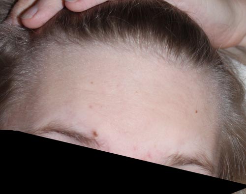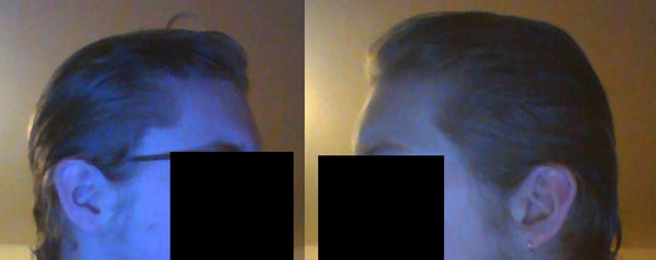 an den Schläfen kommt guter wiederwuchs und eine verdickung ist bemerkbar...seitlich rein in die Stirn....die Front ist schon seit Mai wieder blickdicht und kräftig...