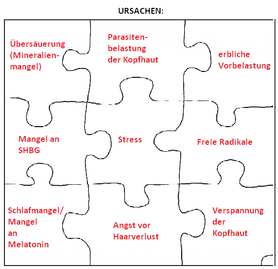 Ich habe mal ein Puzzle gebastelt, mit allen möglichen Ursachen des Haarausfalls.