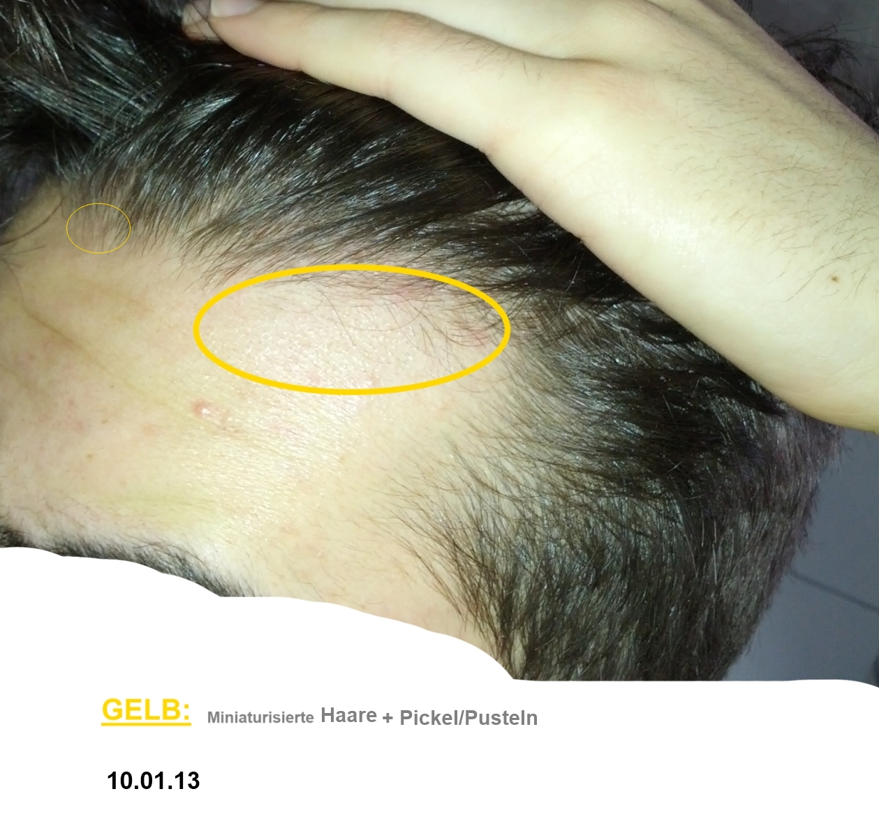 Dafür Beginn der AGA und die ganzen Pickeln/Pusteln wandern vom Gesicht zur Haarlinie entlang