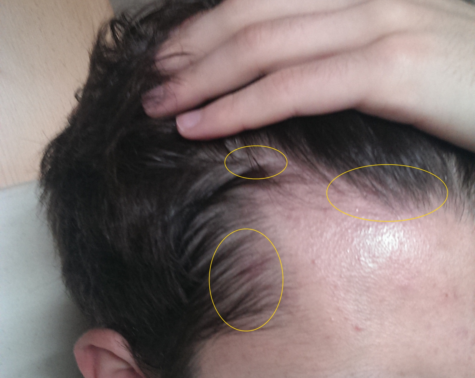 Dafür Beginn der AGA und die ganzen Pickeln/Pusteln wandern vom Gesicht zur Haarlinie entlang