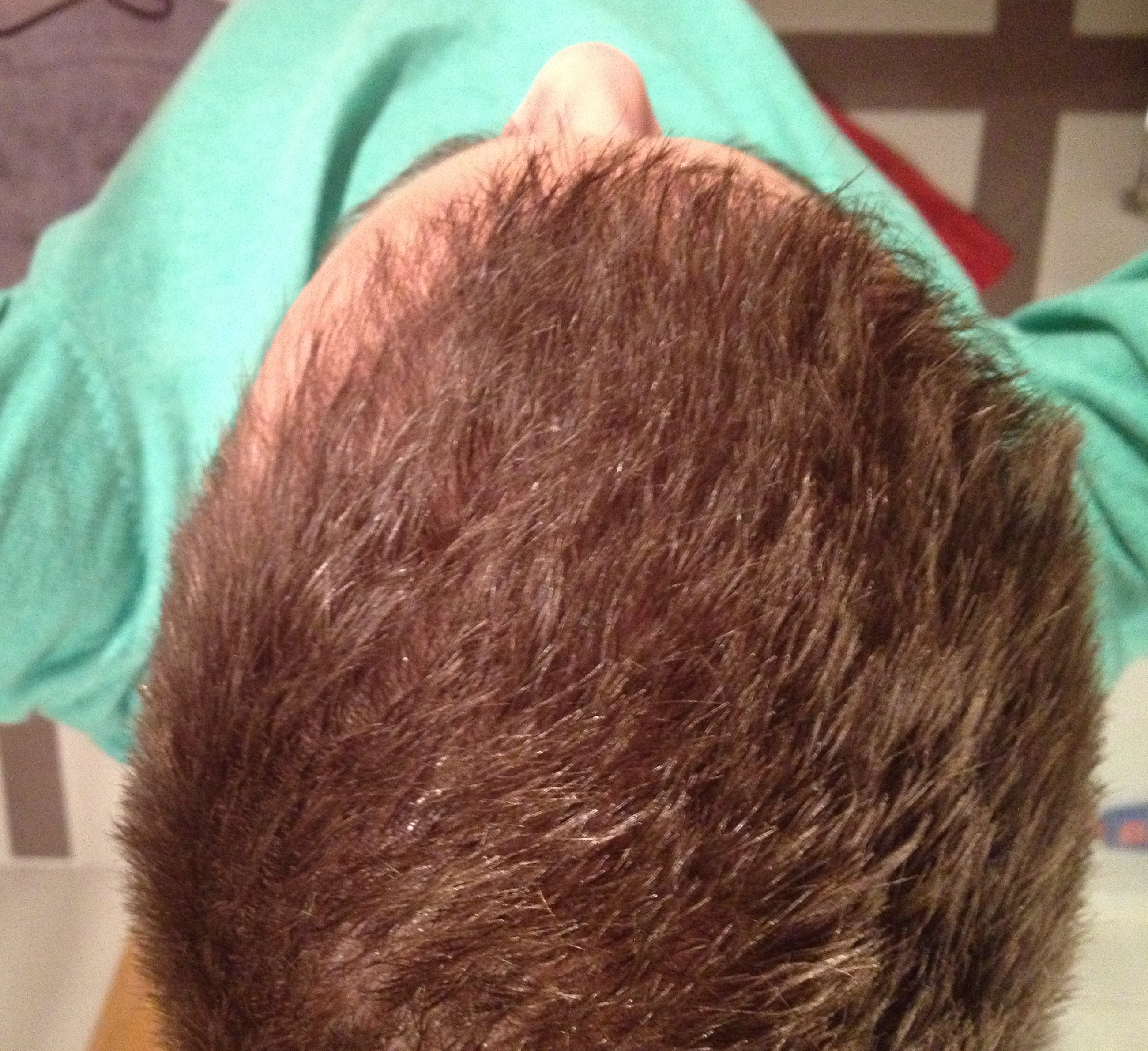 Mein Vater hatte mit 28 einen ähnlichen Status mit borstiger Struktur (nur etwas tiefere Stirn), mit 30 gings dann allerdings auch an der Front langsam los mit leichter Ausdünnung...