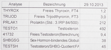 Meine Hormonwerte habe ich nun auch mal überprüfen lassen. Ich weiß nicht warum, aber die Arzthelferin meinte das die Ergebnisse erst in 2 Wochen da sein werden.