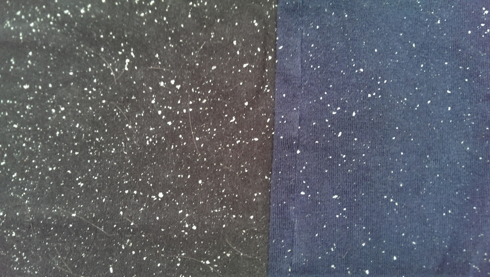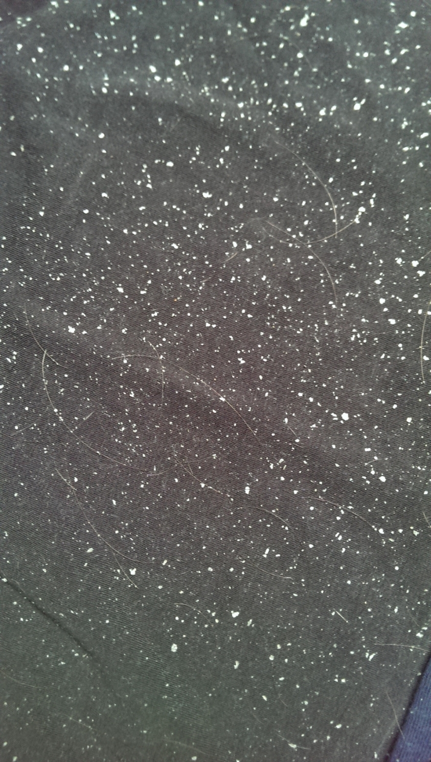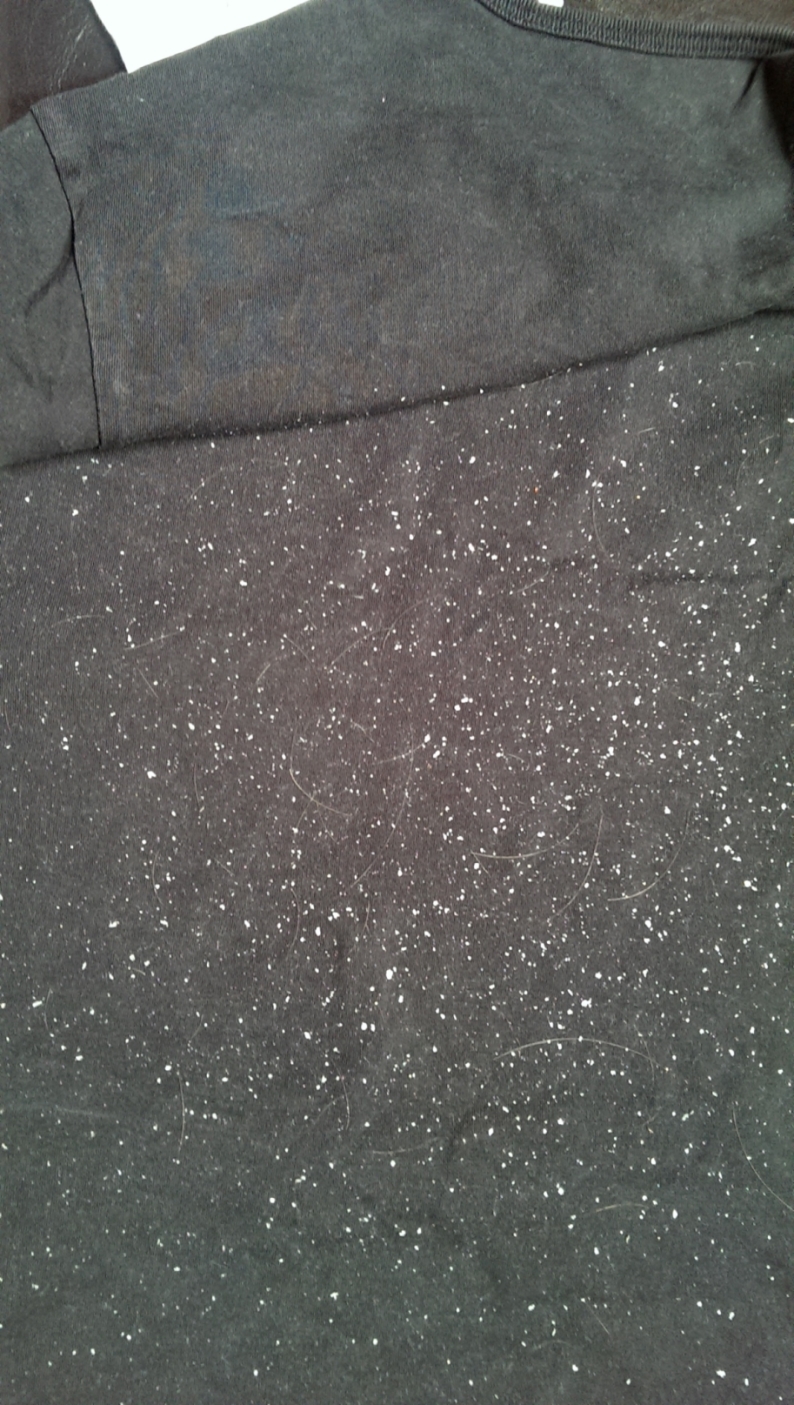 Ich sende noch Fotos nach einer 20 Sekunden " Rubbel-Session" auf einem Schwarzen und blauen T-Shirt.
