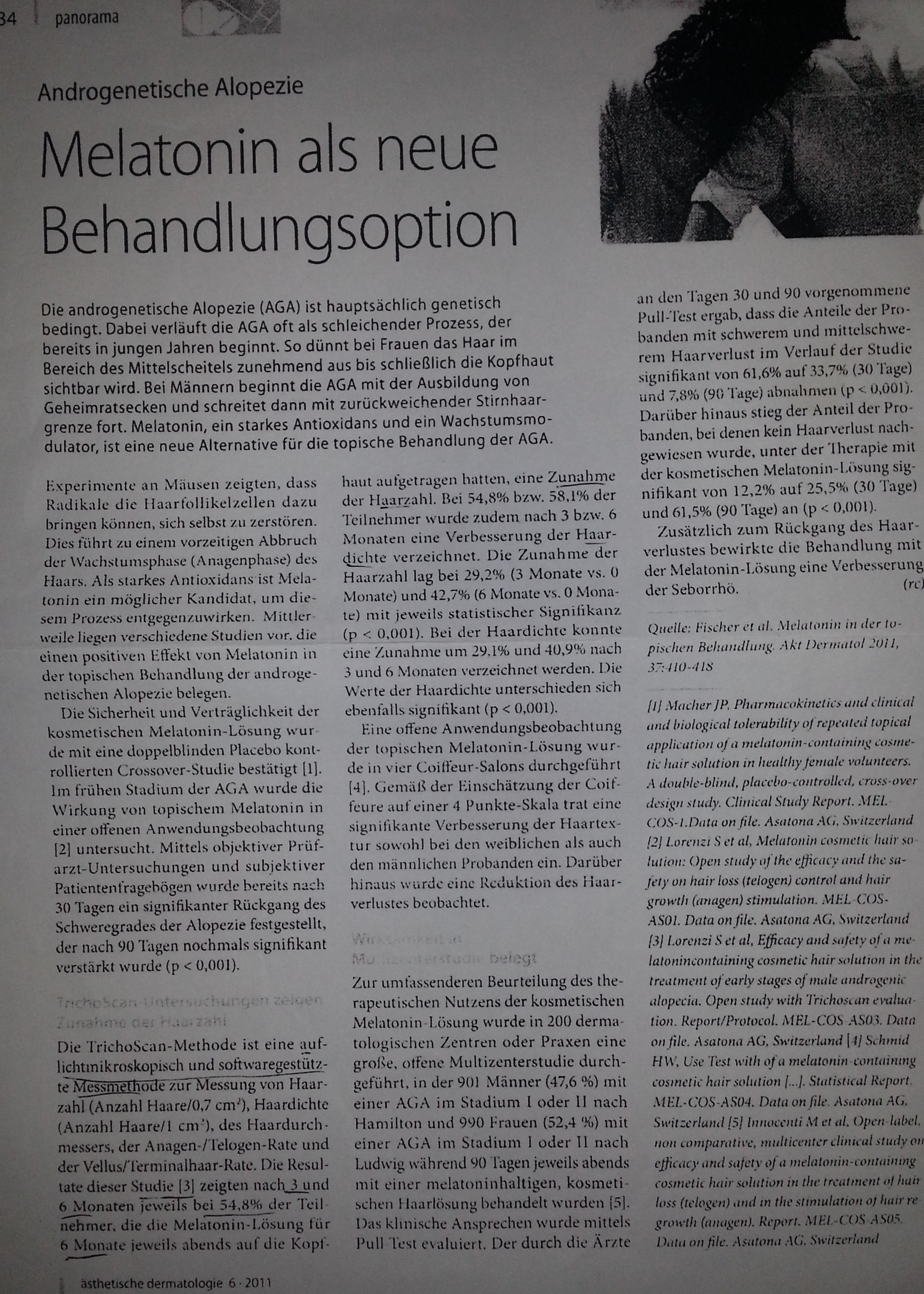 Ich habe unter anderem das hier gefunden: http://www.derma-haarcenter.ch/files/Directory/Publikationen/12_2011/Melatonin+bei+Haarausfall.pdf