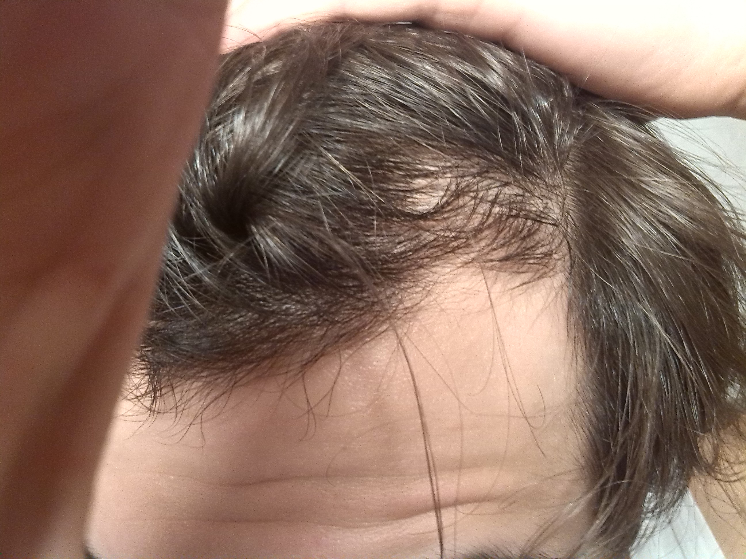Am Rest vom Kopf kann sie das nicht beurteilen weil dort die Haardichte (zum Glück) zu dicht ist.