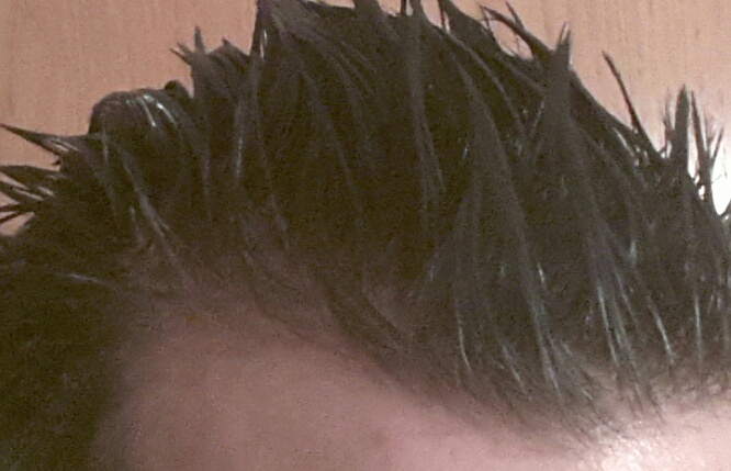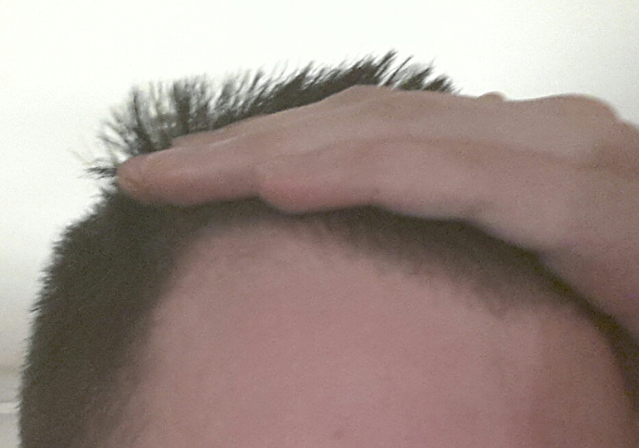 Mach mal ein Bild mit ungegelten, trockenen Haaren und halt sie nach hinten, so das man den Haaransatz sieht.