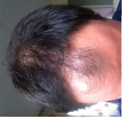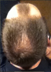 Meinen aktuellen Status könnt ihr nun auf den folgenden Bildern bewundern. Den HA habe ich von meinen Papa geerbt. Er hat ebenfalls einen Streifen, eine ausgebildete Tonsur, die in etwa so groß ist wie meine, nur komplett unbehaart und vorn hat er auch eine Haarinsel. Finde aber, dass ich ihn schon so gut wie überholt habe, von der Tonsur einmal abgesehen.