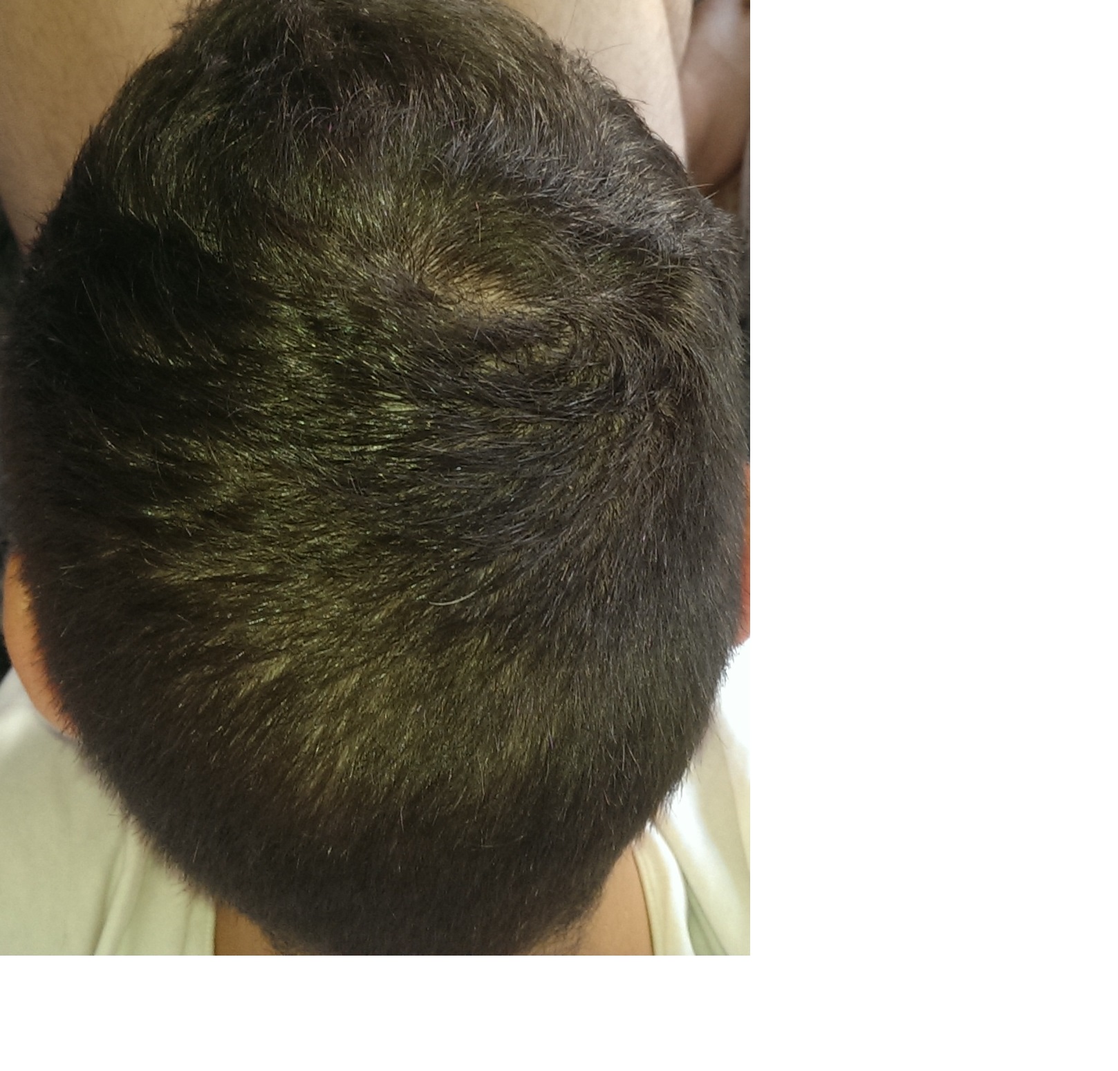 Am Hinterkopf sieht es gut bei dir aus! Vorne lichtet sich die Stirn schon leicht. Bleib da am Ball.