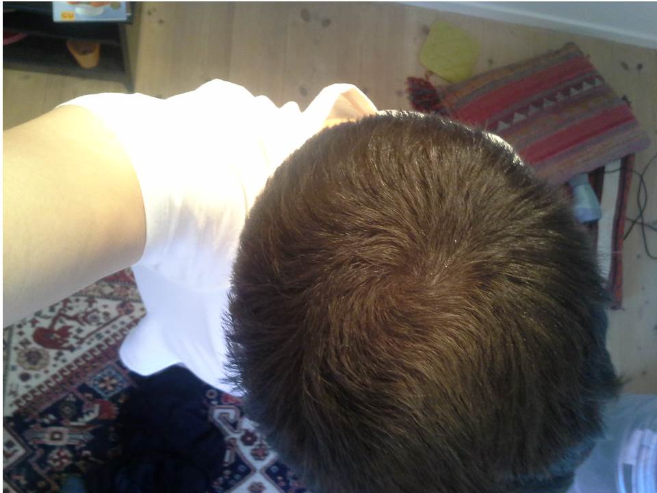 Er hatte Norwood-7, komplette Glatze und dann sind ihm nach kurzer Zeit die Haare wieder gewachsen, wo seit vielen jahren keine mehr waren.