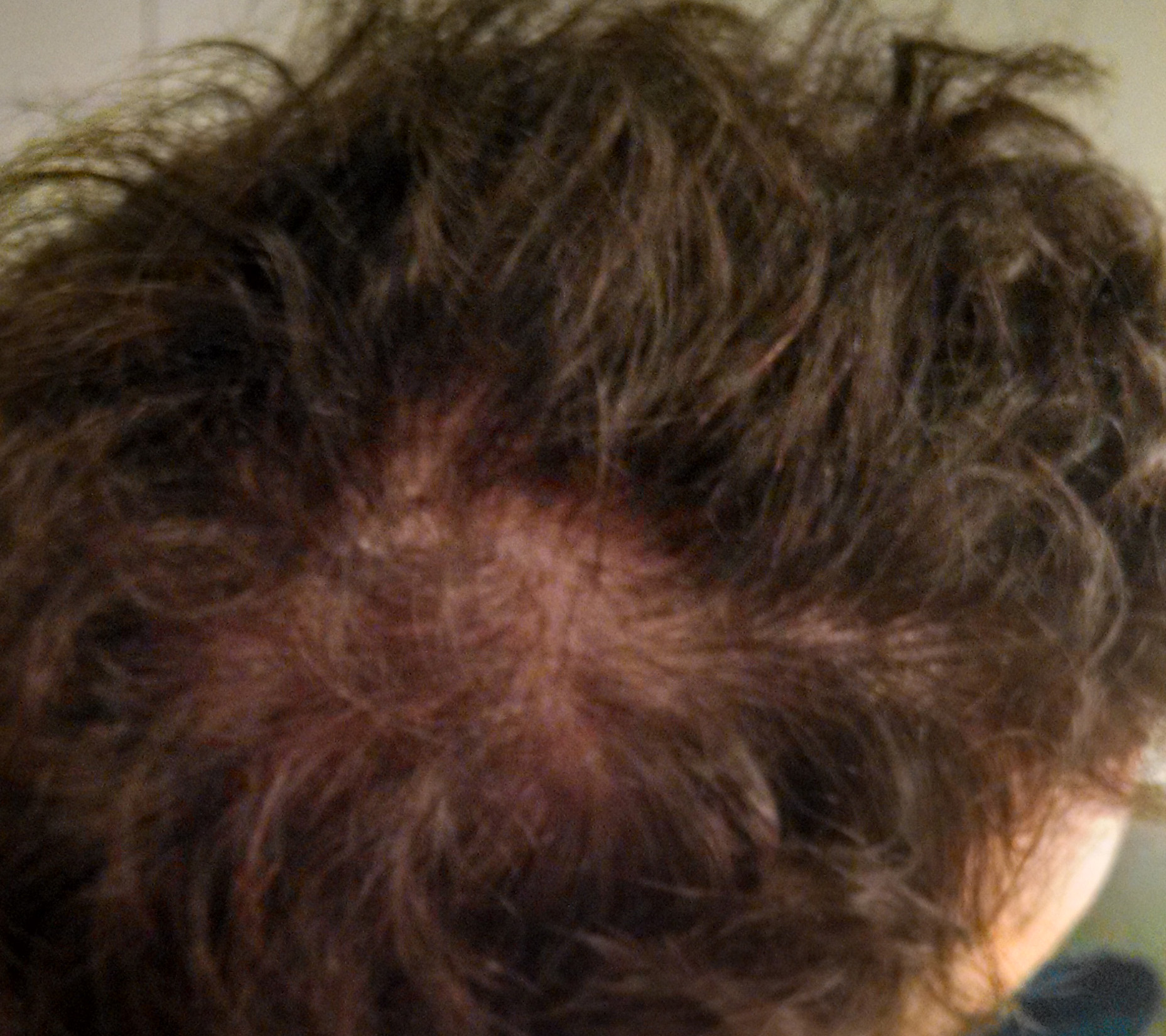 Wie ihr sehen könnt sind die GHE mittlerweile schon deutlich ausgeprägt, der Haaransatz vorne ist ausgedünnt und auch am Hinterkopf wird es langsam, aber sicher, lichter. Ich bin gerade 27 geworden, begonnen hat der Haarsausfall etwa mit 20 und die GHE sind seit dem langsam gewachsen. Richtig auffällig geworden ist es aber eigentlich erst in den letzten 2,3 Jahren geworden, vorher waren wie gesagt nur die GHE betroffen, aber seitdem dünnt der Ansatz in der Mitte immer weiter aus und der Hinterkopf geht es jetzt auch schon sichtbar los Sad