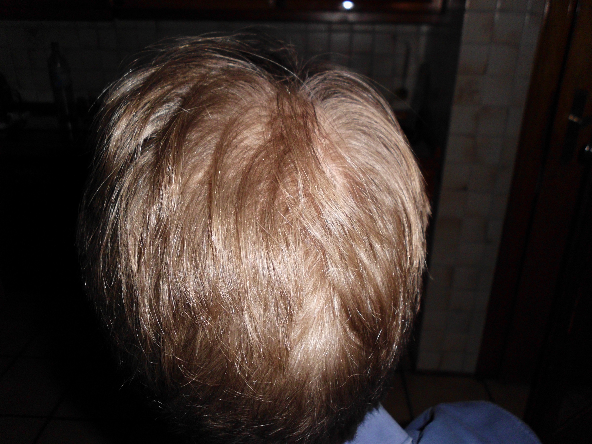 Ist das ein Bild von deinem Kopf? Sieht doch noch gut aus, finde ich. Sieht ein wenig schütter aus, wie diffuser Haarausfall. Aber sonst sieht das doch wunderbar aus.