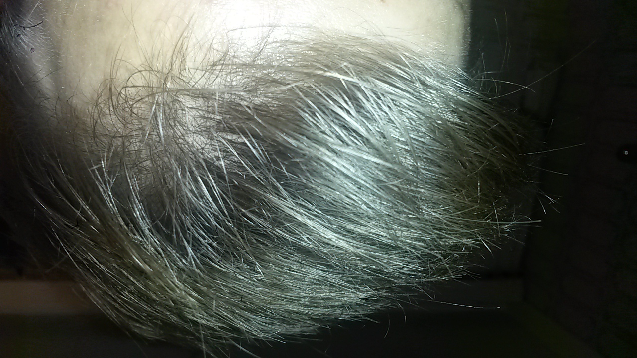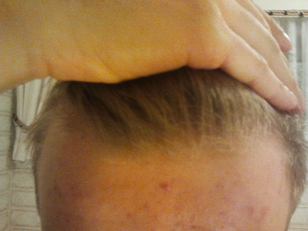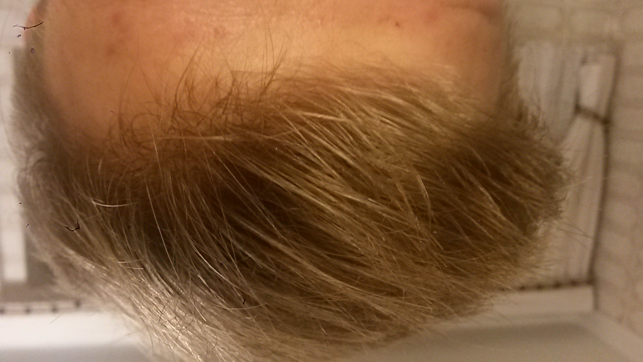 auf dem ganzen Oberkopf haben sich die Haare sehr stark gelichtet und die GHEs sowie Tonsur prägen sich immer stärker aus ....