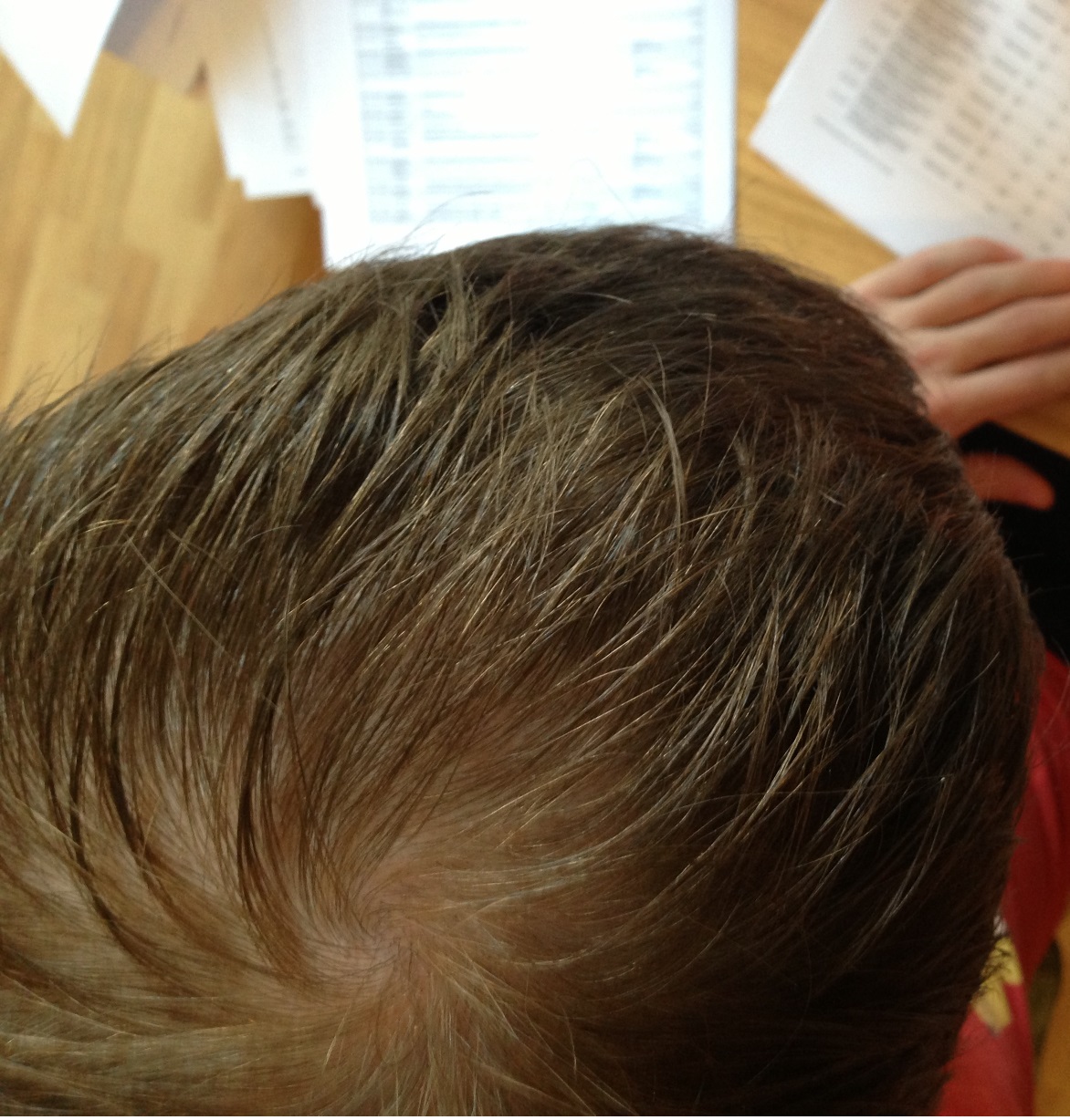 bei mir ist die kopfhaut ohne medikation staubtrocken und es kommt mir eben so vor als würde es am oberkopf und vor allem im mittelscheitelbereich immer mehr ausdünnen, sieht man glaube ich auch auf den fotos.