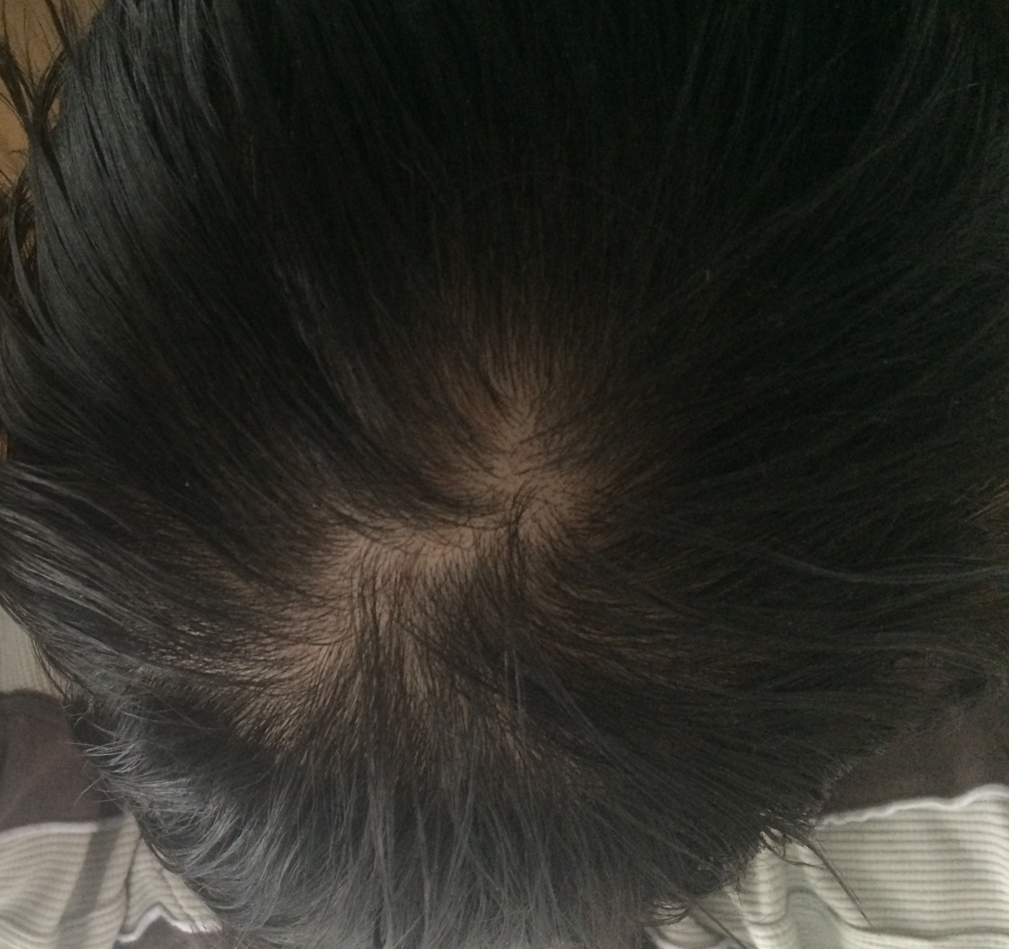 Hier noch ein weiteres Bild, ich habe hier die Haare nach vorne gekämmt, sodass die Lichtung noch besser erkennbar ist