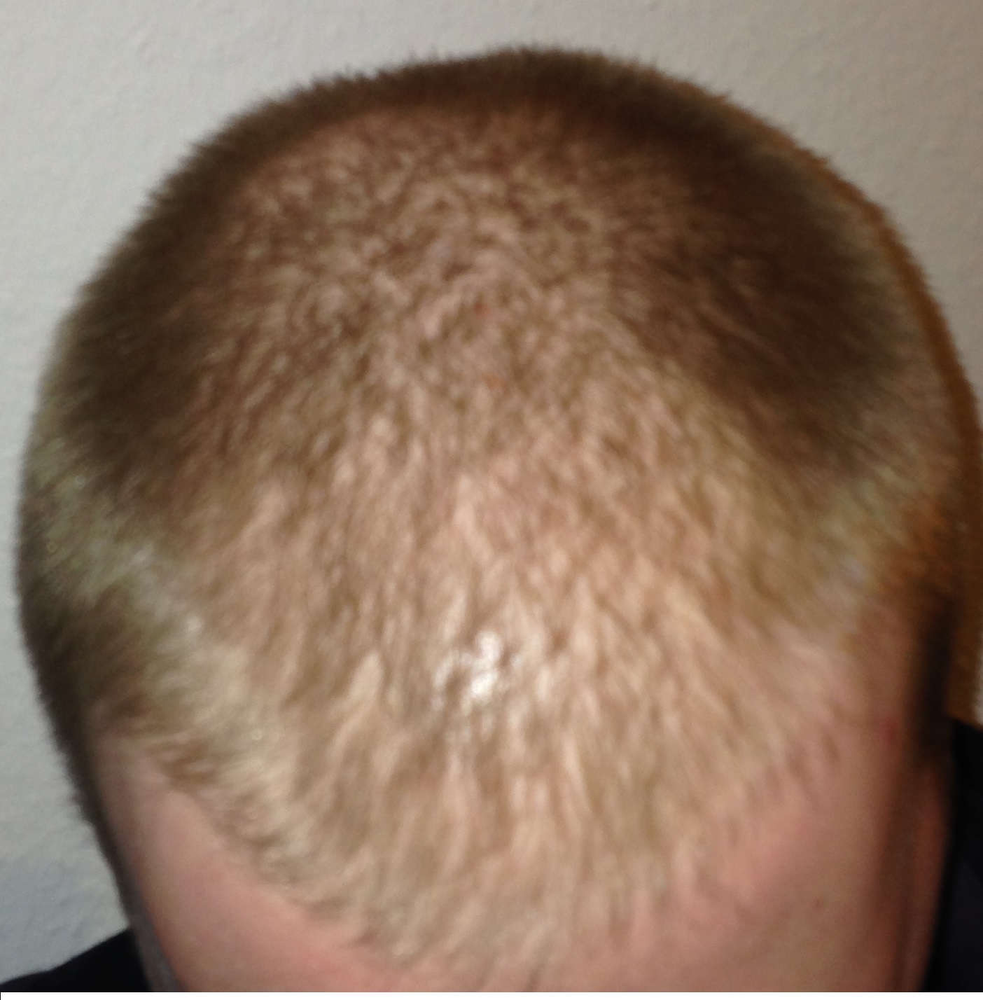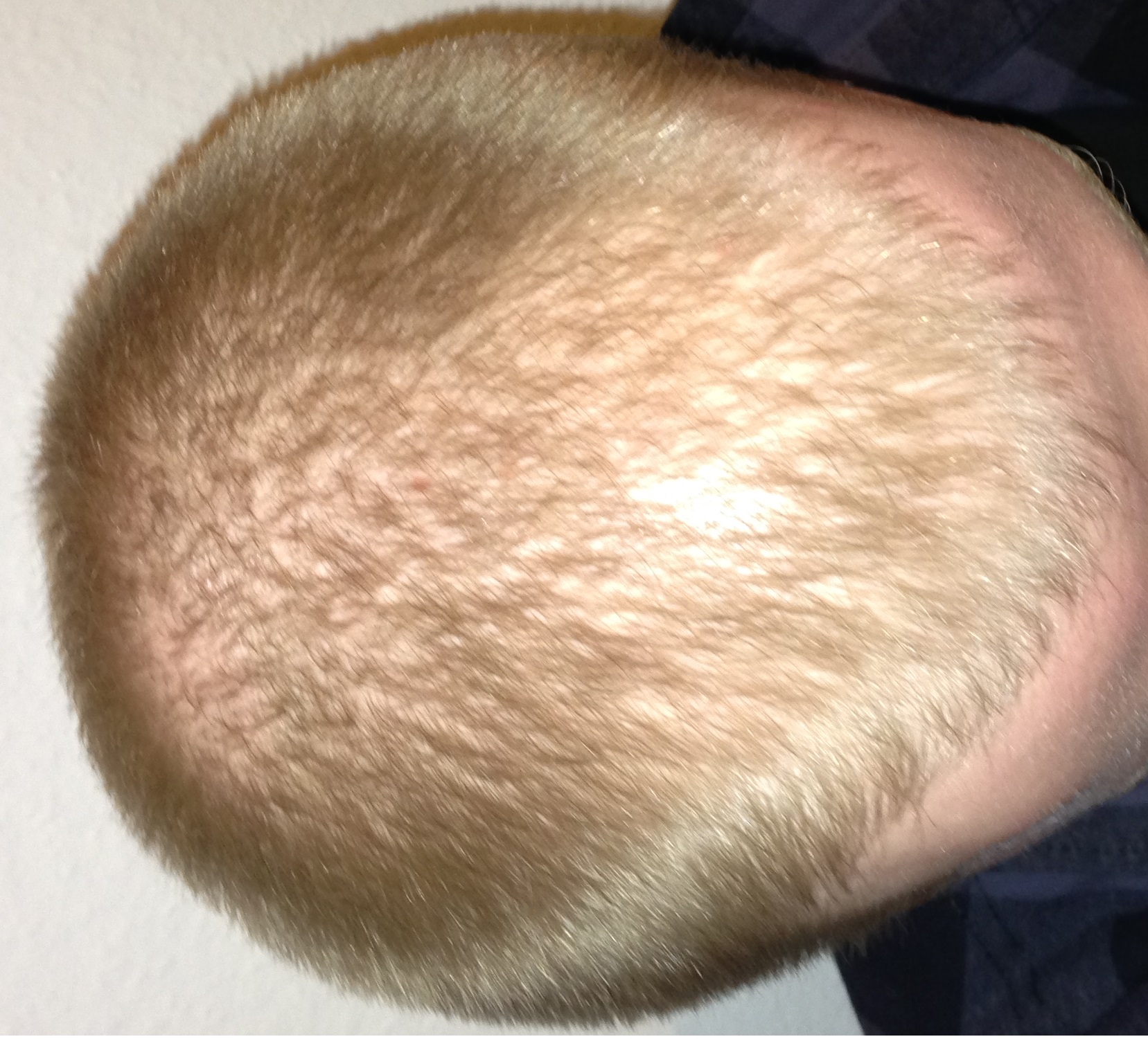 Im Oktober sahen meine Haare dann so sch... aus, dass ich mir einen Haarschneider gekauft habe und sie auf ca. 9mm rundrum gekürzt habe. In der Tonsur sieht es dann bekanntlich nicht mehr so licht aus. Jedoch habe ich den Eindruck, dass mein Front Status seit Juli schlechter geworden ist. Das Fin nehme ich seit anfang Juli konsequent und regelmässig durch, habe aber bis jetzt ( ca. 7 Monate) keine grosse Verbesserung erfahren, wie gesagt, eher Verschlechterung.