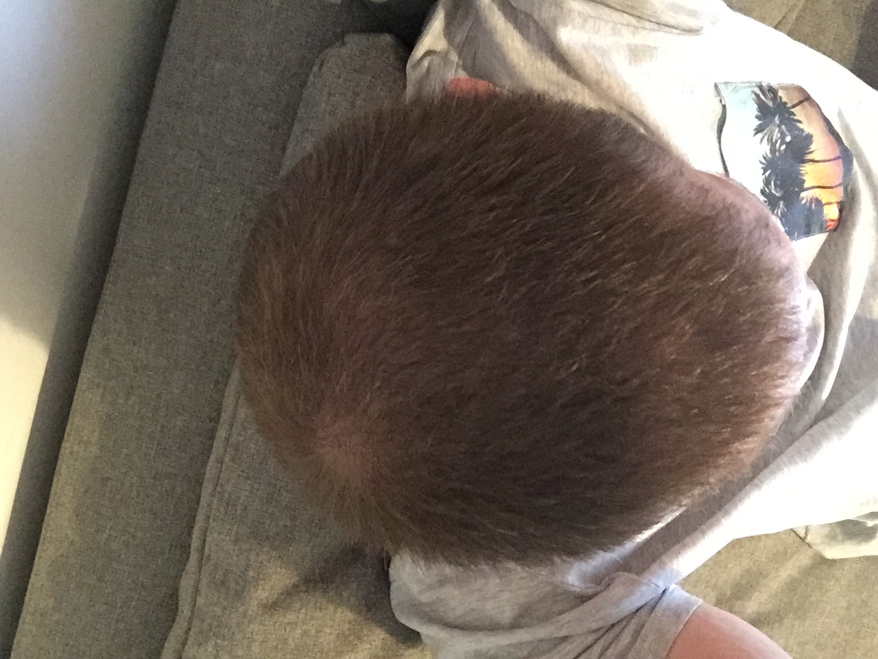 Meine Haare sind jetzt Ca 1,5 cm lang. Wenn ich ein Foto von oben mache sieht ma eigentlich gar keine lichten stellen, nur wenn das Licht stark von oben draufscheint sieht man es.
