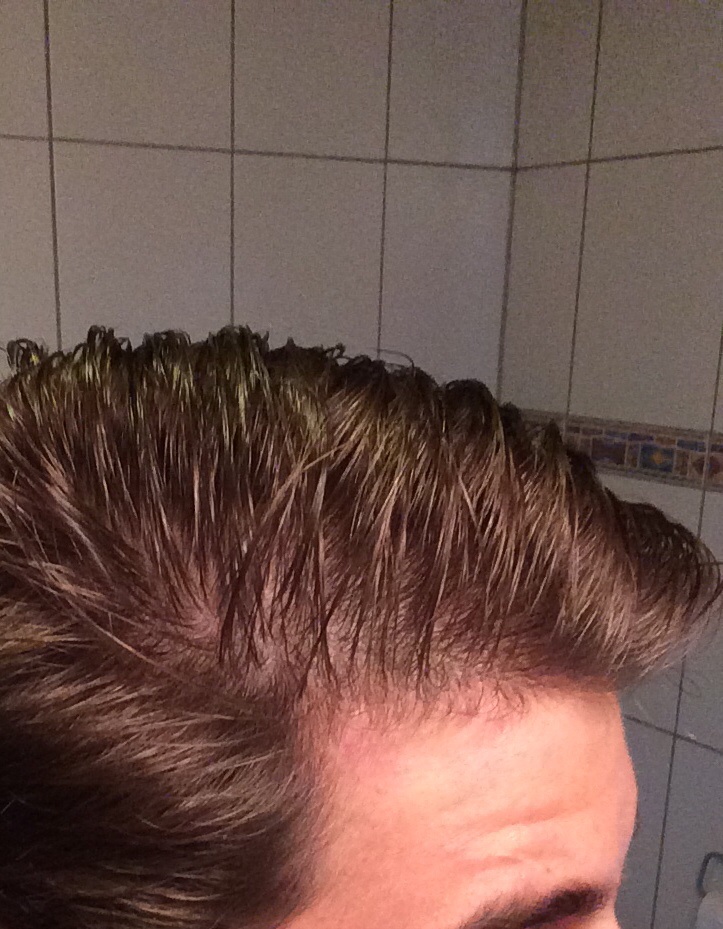 Ich handelte jedoch zunächst nicht, ruhte mich auf meinen 'festen' Haaren aus und lies mich vertrösten. Als ich Anfang diesen Jahres allerdings bemerkte das mein Haar im Stirnbereich immer dünner und auch durchscheinender wurde, wandelte sich mein Gemütszustand wieder. Nachdem mir ein Hautarzt Regaine empfohlen hatte, wendete ich es 4 Wochen lang an, mit dem Effekt das die Haare noch lichter wurden...ich brach dann die Behandlung ab und bin nun seit mehrere Wochen am überlegen ob es sinnvoll wäre mit Propecia anzufangen. Nun meine Frage an euch: Wie schätzt Ihr meinen Haarzustand anhand der Bilder (mit angefeuchtetem Haar) ein und wäre es überhaupt einem 19 jährigen zumutbar Finasterid zu nehmen? Ich möchte mir meinen Hormonspiegel nicht in so jungen Jahren versauen.