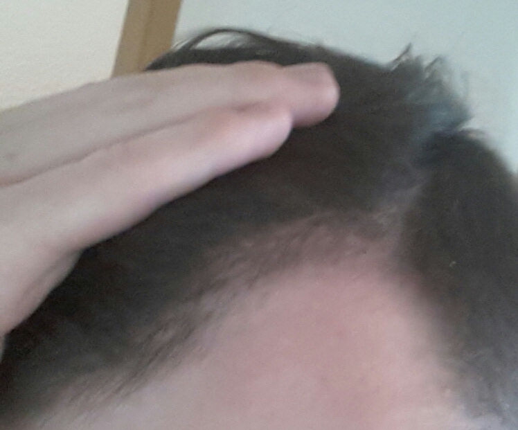 Zum Haarausfall an sich ist zu sagen, dass keinerlei Tonsur festzustellen ist und sich der Ausfall nur auf die Schläfen, sowie die Front konzentriert.
