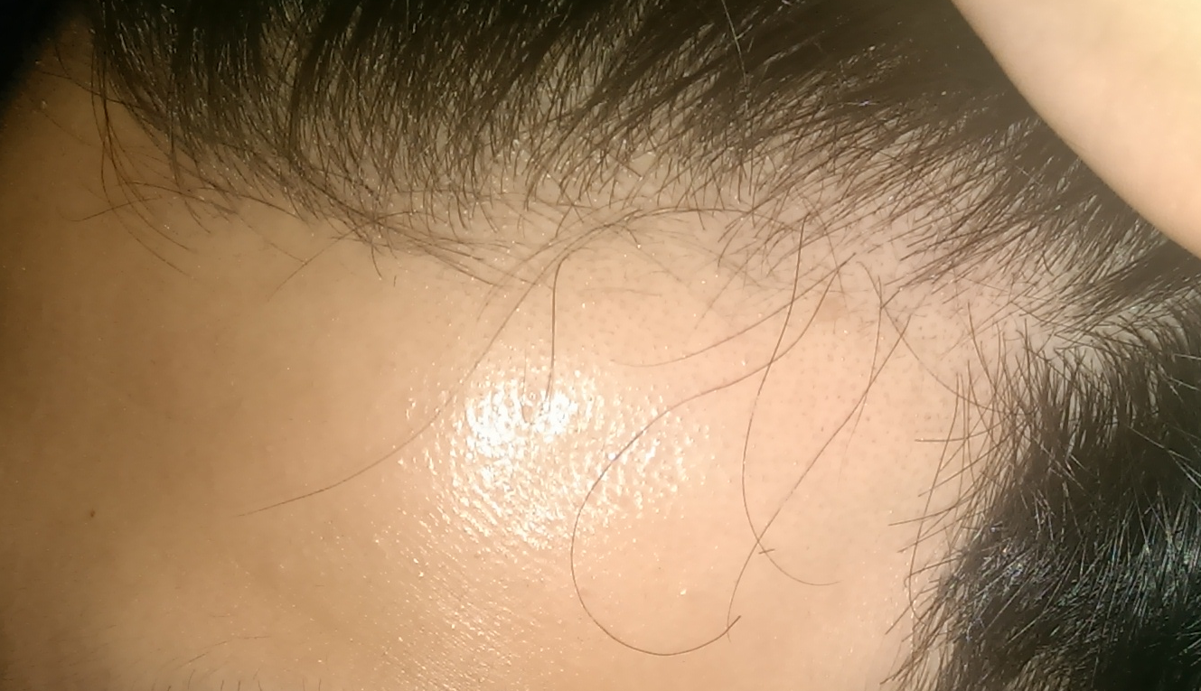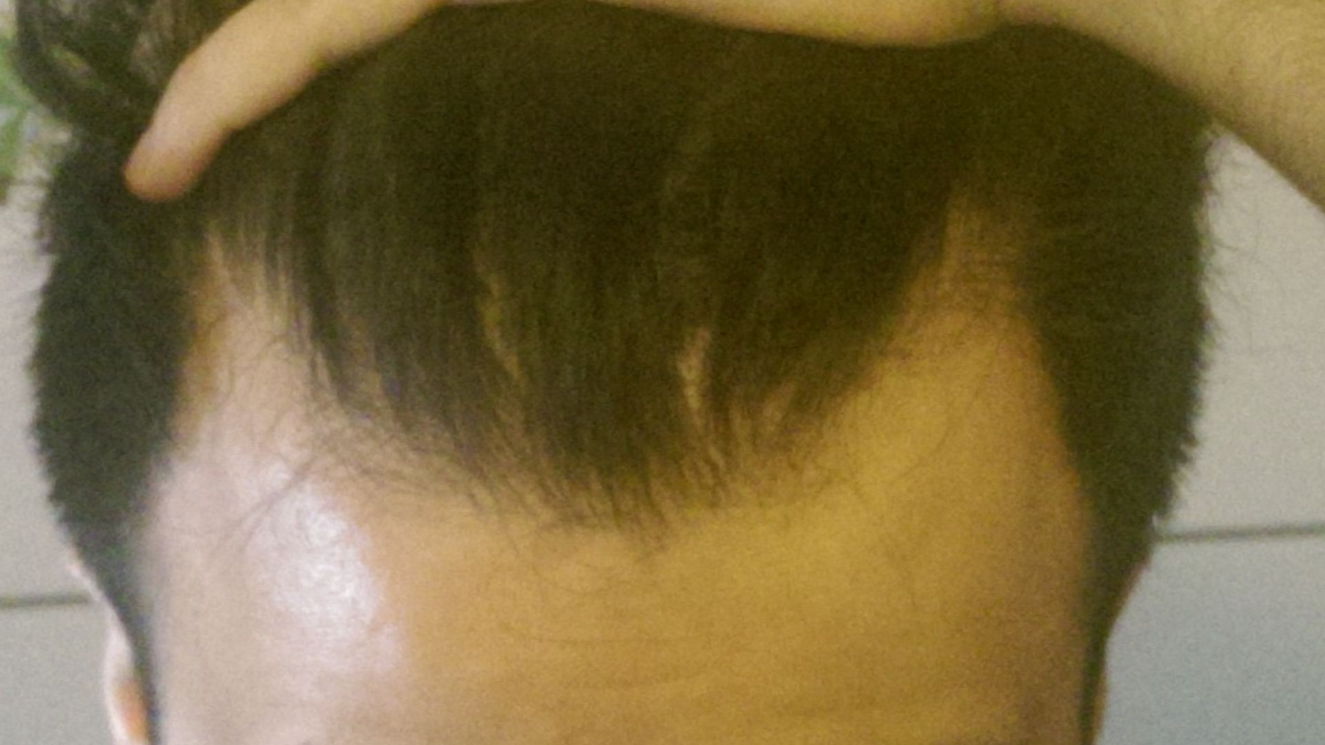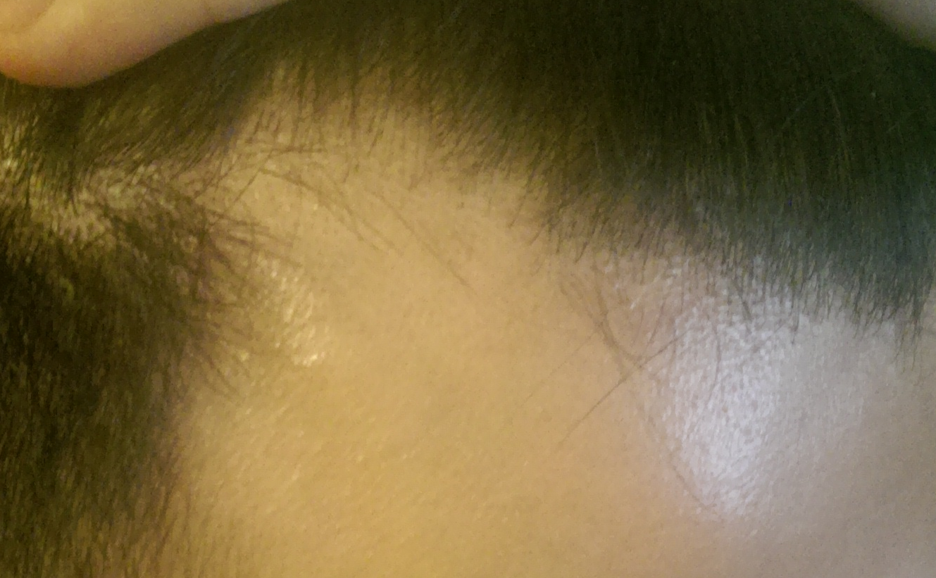 Am Hinterkopf sieht man zum Glück noch nichts, deshalb auch kein Foto. Ich merke nur wie es in dem Bereich mit leichtem Druck (mit den Fingern drauf drücken) etwas weh tut und wenn ich genau durchfasse fühlt es sich auch nicht so dicht an wie an anderen Stellen. Der Hautarzt meinte auch, dass man da ja noch nichts sieht.