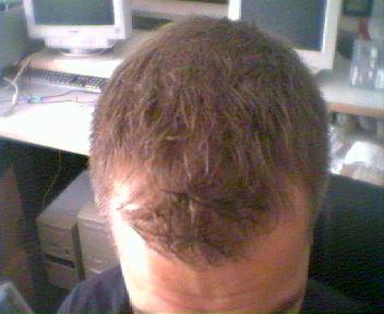 Ich hab mir das dann mal genauer angesehen, und ich bin ebenfalls positiv überrascht. Ich habe den Fortschritt sowie den Verlauf nicht sonderlich im Spiegel kontrolliert - ich wollte mich nicht nervlich fertig machen. Aber, der anfängliche weiße häßliche Flaum wird dicker und bekommt jetzt braun-blonde Farbe. Und er ist schon teilweise 1 1/2 cm lang... Und paßt nicht zur alten Frisur !! Es fällt schon auf.