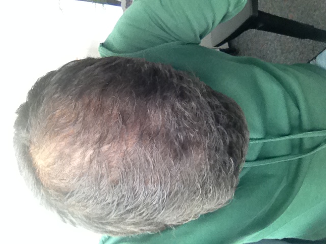 Die Haare allgemein und die dünne Bereiche (wie Tonsur) werden langsam dichter. (Vergleich IMG_5316 und IMG_5440)