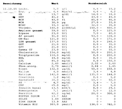 die restlichen Laborwerte folgen im nächsten Beitrag!