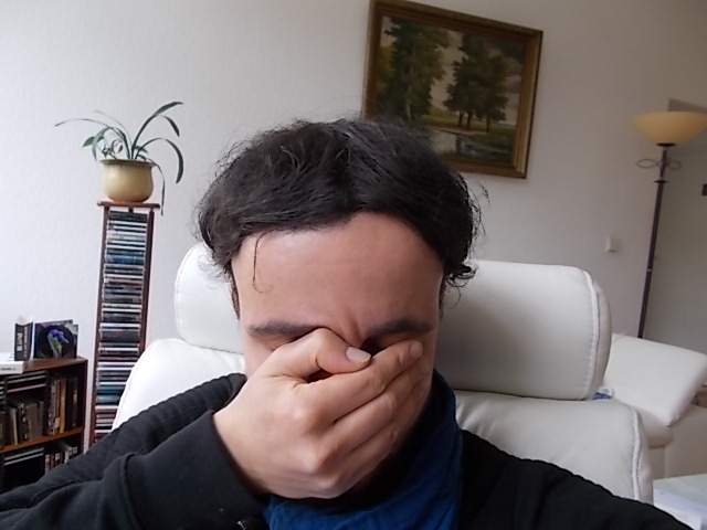 Der Kronleuchter und das Bild von Opi sind toll. Die Pflanze braucht auch mal dringend Wasser und deine Haare eine Kur.....aber im Ernst.....für eine objektive Beurteilung solltest du nur deine Haare fotografieren und dies bei günstigen Lichtverhältnissen und um einiges näher zum Kopf und nicht Gestylt und/oder kaschiert,o.k?