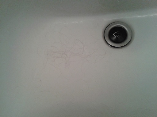 Leider ist mir, wie beim letzten mal, aufgefallen, dass ich nun wieder vermehrt Haarausfall habe. Allein vor dem Duschen, wenn ich mit den Händen ein paar Sekunden durch die Haare fahre, fallen mir im Schnitt 150 Haare aus. Wahrscheinlich sind es beim Duschen und danach noch Weitere!