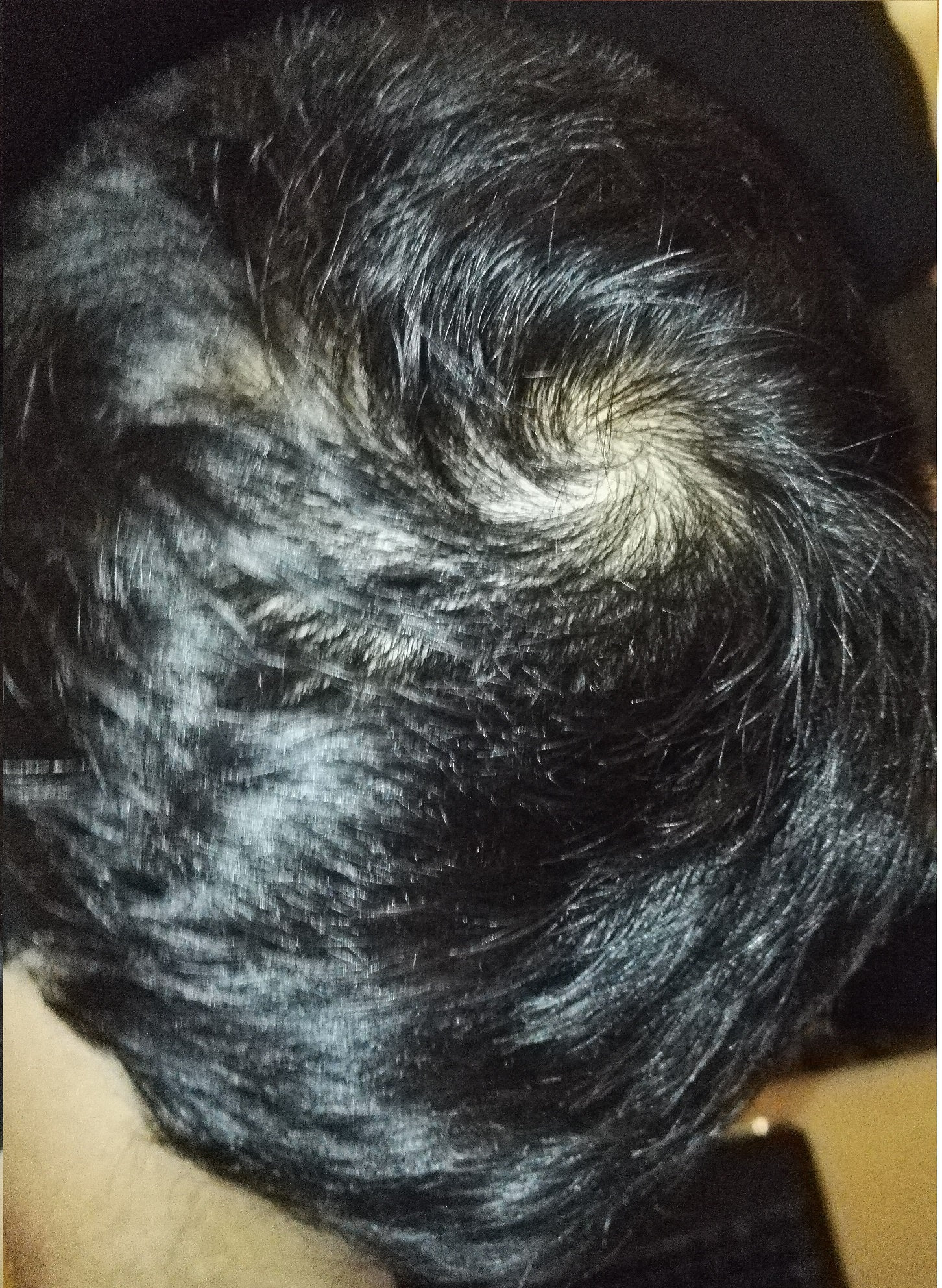 Mein Coiffeur sagte das es nur ein Wirbel sei. Jedoch bin ich nun unsicher da andere Leute und ich selbst auf Haarausfall plädieren.